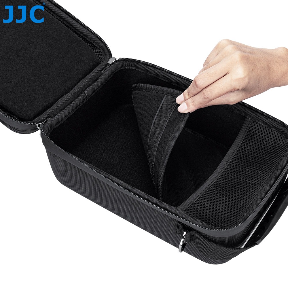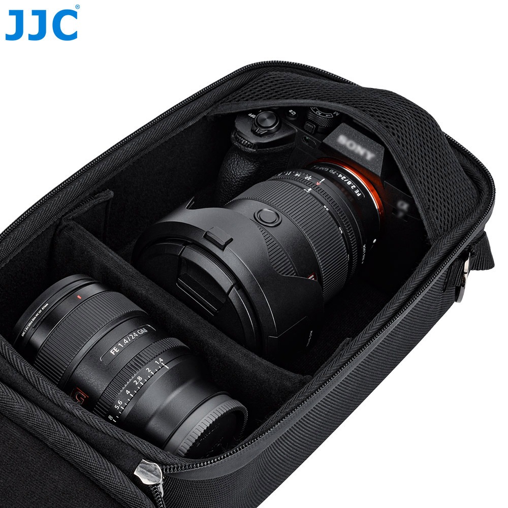 Este estuche garantiza la seguridad de su equipo y le permite acceder fácilmente cuando lo necesite. Su exterior está fabricado en plástico EVA de primera calidad, reforzado con nervaduras. Esta combinación reduce eficazmente el impacto de vibraciones y golpes, garantizando durabilidad y protección para su valioso equipo. Cuenta con una amplia abertura con cremallera bidireccional que permite un acceso fácil y práctico. El interior está forrado con un forro aterciopelado para proteger su equipo de arañazos. La almohadilla inferior engrosada proporciona protección adicional para la cámara y el objetivo. Incluye dos separadores suaves desmontables * para personalizar el espacio de almacenamiento interior y adaptarlo a diferentes cámaras y objetivos, evitando que se golpeen entre sí. También cuenta con un divisor fijo suave que ofrece protección adicional para tus equipos. Este divisor fijo cuenta con un bolsillo de malla con cremallera, perfecto para guardar objetos pequeños como tarjetas de memoria. Además, cuenta con un bolsillo de malla más grande para artículos como un soplador de aire, bastoncillos de limpieza, teléfono, batería externa, cables de carga, etc., lo que hace que tus viajes sean más cómodos. Este estuche incluye una correa para el hombro. Todos nuestros productos han sido sometidos a múltiples inspecciones para garantizar su calidad. ¡Confía en nosotros! Los divisores interiores se pueden reemplazar o complementar con el JJC SP-H, disponible por separado.