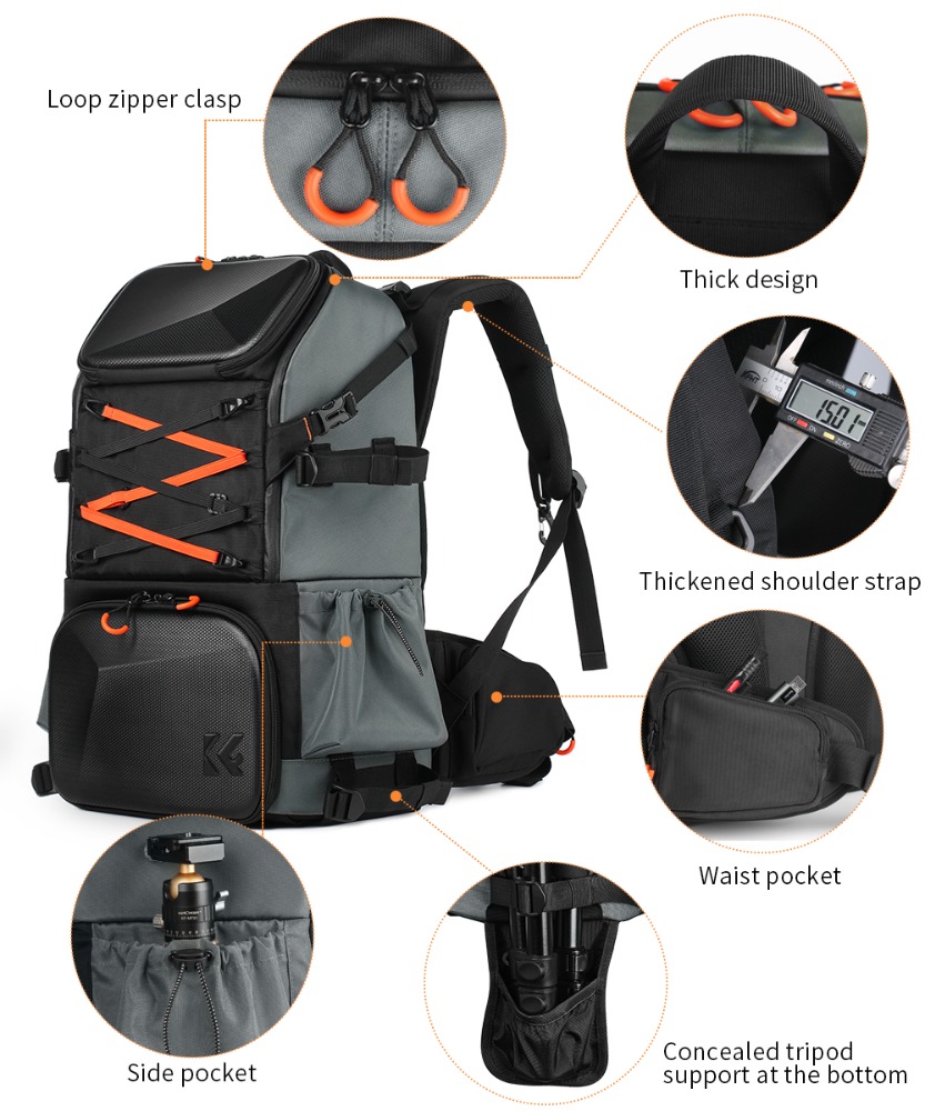 - * [Almacenamiento clasificado] El interior de la bolsa para cámara cuenta con una placa divisoria de EVA con velcro que es extraíble y puede combinarse libremente en función del tamaño del equipo. También hay un compartimento independiente para el portátil en la parte posterior, con capacidad para un portátil de hasta 15,6 pulgadas. También se puede utilizar como bolsa de viaje o bolsa de uso diario, lo que facilita la organización.